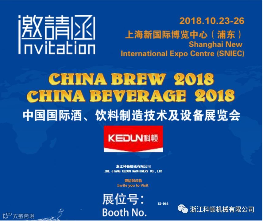 2018(第十三届)中国国际酒、饮料制造技术及设备展览会将于2018年10 月23至26日在