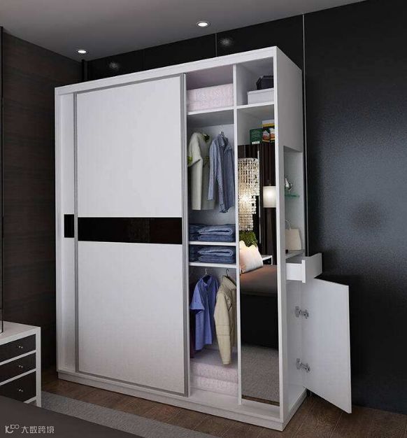 一般标准的木工板材都是1220mmX2440mm,也就是说衣柜如果要做超过2.4米的高度就要拼板,所以超出2.4m的,最好规划多一个隔层。衣柜没有靠墙的一侧,最好用两块18mm的板拼起来(如果想稳妥可以里面再加一块12mm的板加厚),这样就可以提高衣柜的支撑力。
