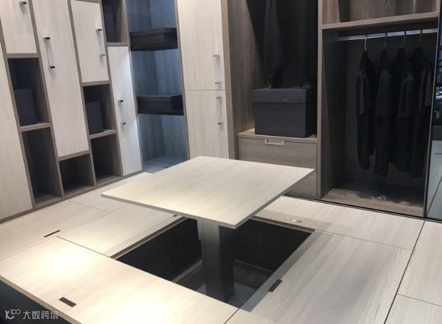 带升降台的榻榻米,连买桌子的钱都省下了,约上三五知己在这里聚会别有一番滋味;把升降台降下,静静的看会儿书,一个人的时候也要好好过。