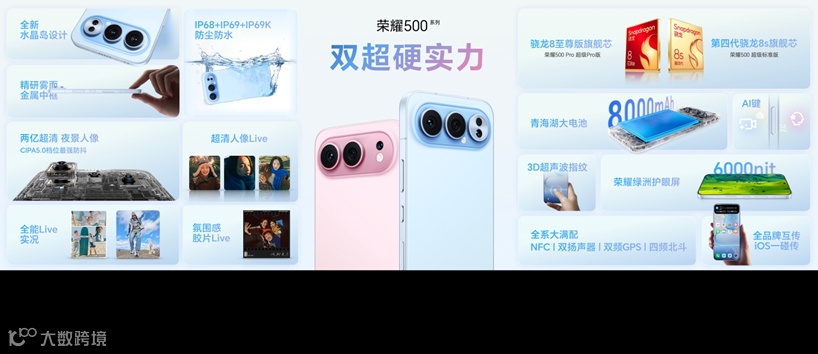 11月24日,荣耀500系列在杭州正式发布,该产品系列在“影像、性能、续航、外观、体验”等方面实现全维升级突破,重塑档位标准。荣耀500系列共两个版本,分别为荣耀500超级标准版与荣耀500超级Pro版,起售价分别为2999元、3899元,目前已经开启预售,11月27日10:00全渠道正式开售。