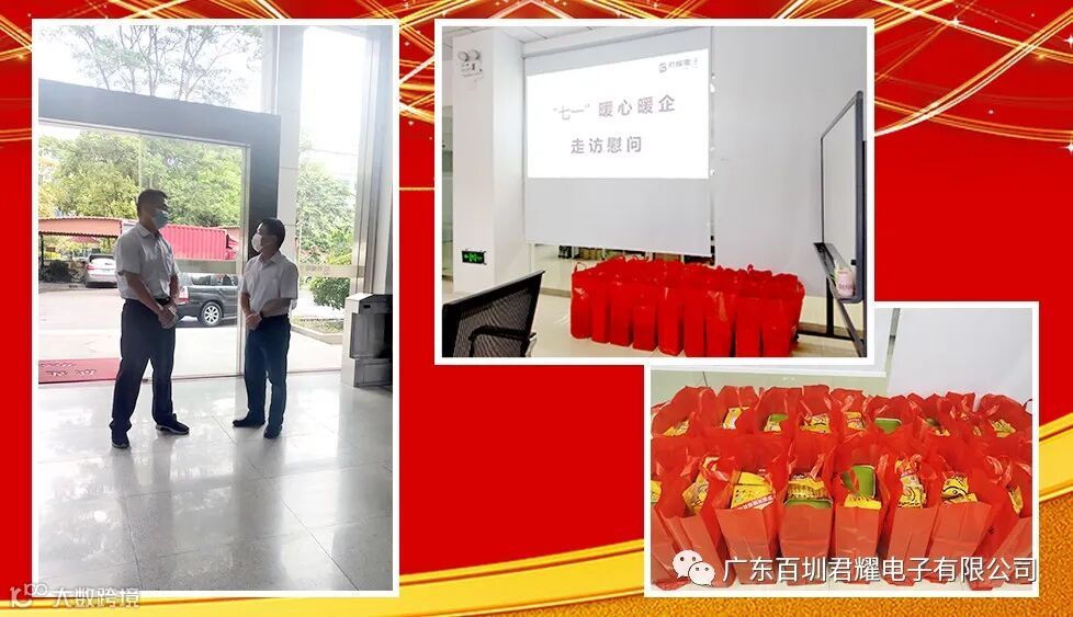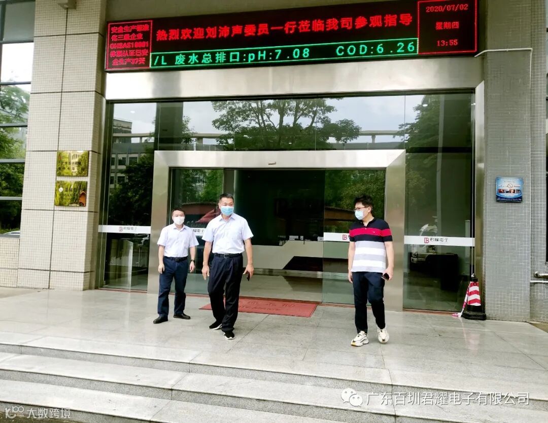 2020年7月2日,松山湖管委会刘沛声委员一行走访君耀电子,与我司领导亲切交流,关怀我司在疫情常态化防控下的生产经营情况,我司领导对松山湖协助企业做好复工复产及防疫工作表示衷心感谢,虽上半年预期目标有些影响但总体运营正常,也有加强关注环保和生产安全,并积极参与企业内部党建工作。刘委员对我司的努力充分肯定,同时也对发展进程中遇到的问题给予指导建议。