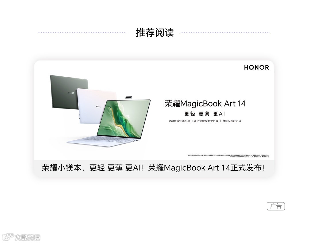 轻薄美学遇上科技魔法,荣耀MagicBook Art 14正式开售