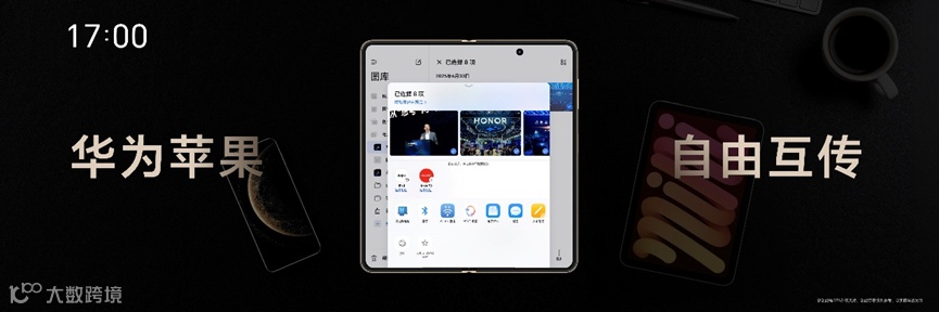 荣耀Magic V5以全生态设备互通互联技术,突破智能终端壁垒。Android、苹果、Windows,荣耀Magic V5均可无缝连接,首次实现全品牌手机、PC、平板、手表、耳机设备的文件互传、数据同步与跨端协作等高效联动,“谁都能连,传啥都快”,开启万物互联AI新体验。
