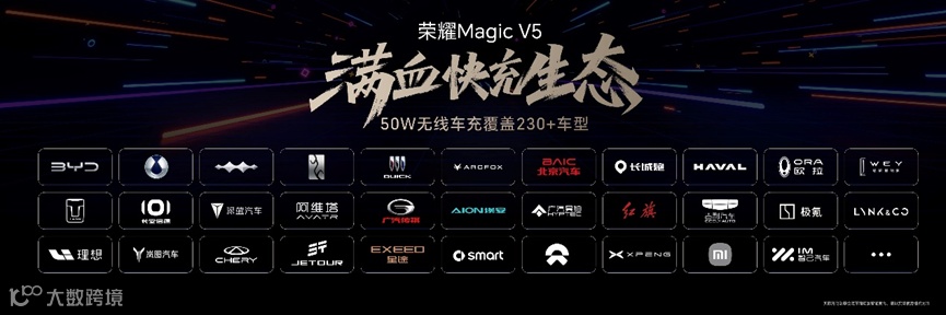 在显示方面,荣耀Magic V5满血高亮双屏,5000尼特峰值亮度,超高频调光,更清晰,更护眼;在快充生态方面,荣耀Magic V5支持66W有线快充,并支持覆盖市面上最广的230多款主流车型的50W无线快充,续航无忧。