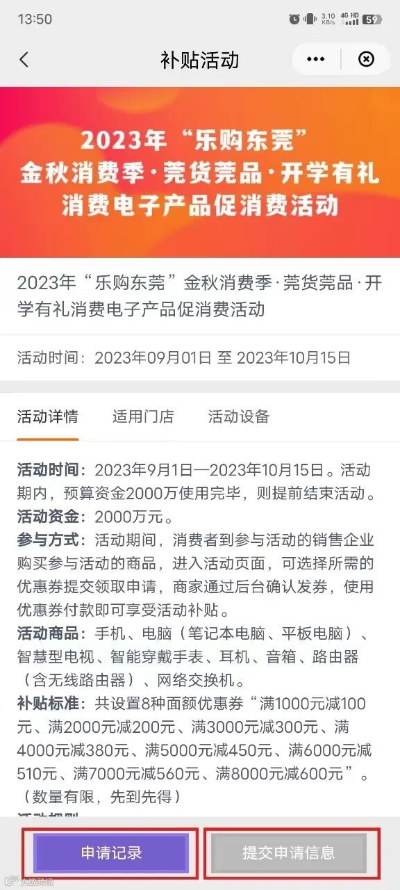 2023年9月1日—2023年10月15日。活动期内,预算资金2000万使用完毕,则提前结束活动。