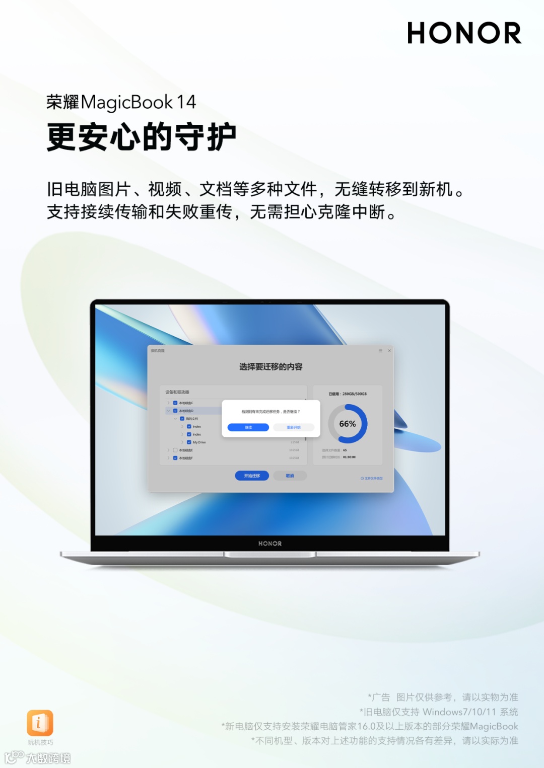 支持多品牌Windows系统电脑向荣耀电脑换机迁移数据