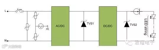 由于LED使用环境的复杂性,在实际使用中LED往往容易坏,其实就是因为没有考虑到LED的使用特性以及应有的保护。尤其是当LED是用在户外时,其驱动电路很容易遭受到雷击过电压和过电流的冲击而造成故障或损坏,引发不必要的财产损失甚至是人员伤亡,因此在设计LED照明电路时必须要充分考虑并做好保护措施,从而提高电路的可靠性,降低故障发生率。