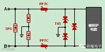 第一级保护一般指最容易引入雷电的端口,如建筑物进线口、AC电源输入端口等,一般采用大通流能力的器件,根据应用场合选取不同的器件。第二级防护与第一级防护类似,一般选用反应速度快钳位电压低的TVS、ESD等。由于第一级防护器件与第二级防护器件采用的过压保护器件种类不同,击穿电压大小不同,响应时间不同,所以要在两级过压保护器件之间加退耦元件才能保证两级过压保护器件协同工作。退耦元件要求有一定的阻抗才能起到退耦的作用。