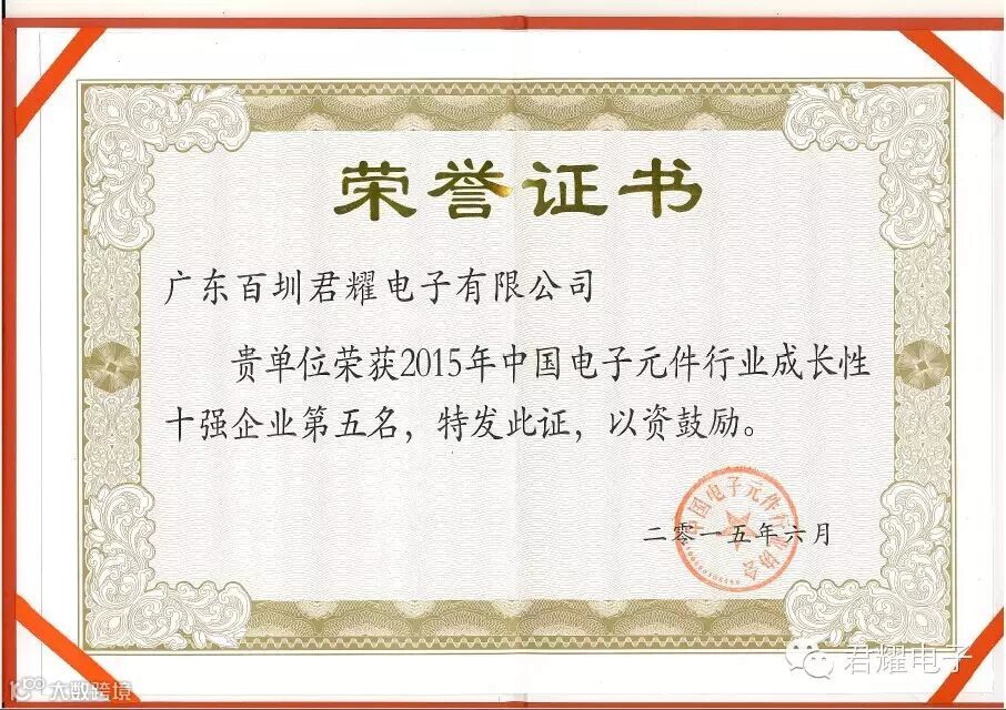 同时,君耀电子还位列中国电子元件行业成长性企业TOP5,与金龙、富通、立讯、和宏等大佬共同上榜。我国的宏观经济已经进入“新常态”,在“工业强基工程”等国家重点战略的推动下,以电子元件百强企业为代表的我国电子元件行业优秀企业还将获得更大的发展机遇。但与此同时,电子元件百强企业也必然要比行业内的其他企业承担更多的责任,为整个行业的发展做出应有的贡献。