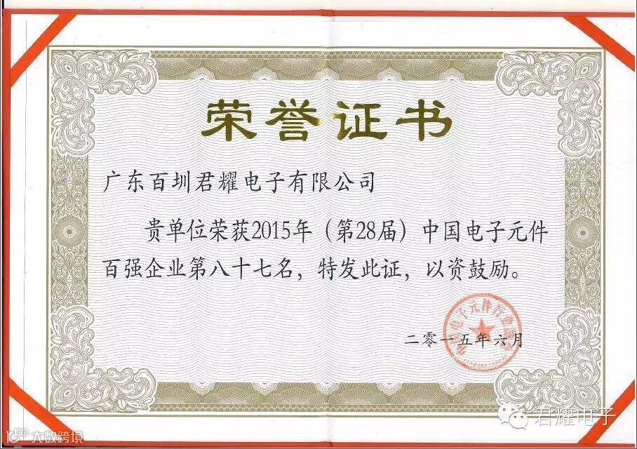 第28届中国电子元件百强名单发布,君耀电子凭卓越的规模实力、财务状况、研发能力等方面的突出表现、首次参加即成功上榜百强。