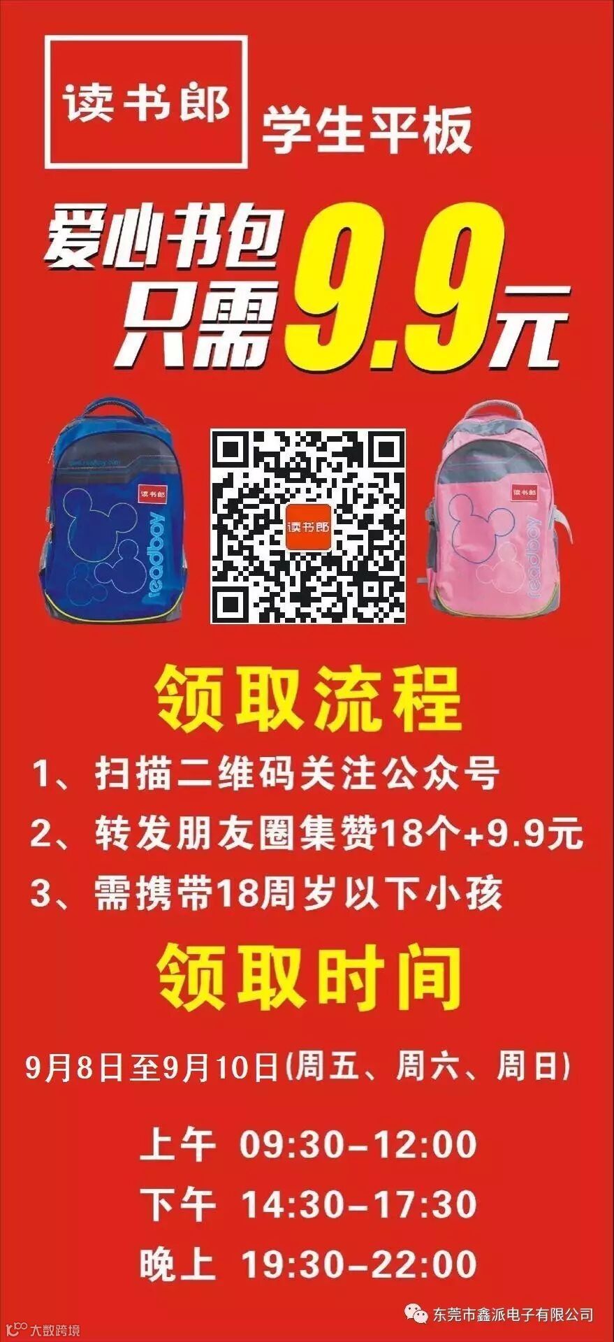 原价98元书包,只需9·9元!