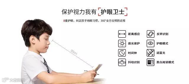 使用平板还担心近视问题?孩子的双眼,我来守护。读书郎学生平板内置「护眼卫士 」 :距离感应、反转识别、感光保护、护眼模式、时间钟、滤蓝光、抖动识别、黑白阅读模式,8重护眼 ,全方位保护专心致志的你。