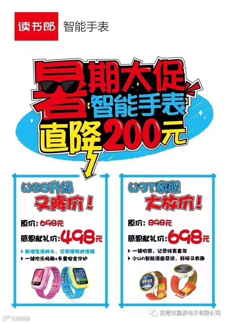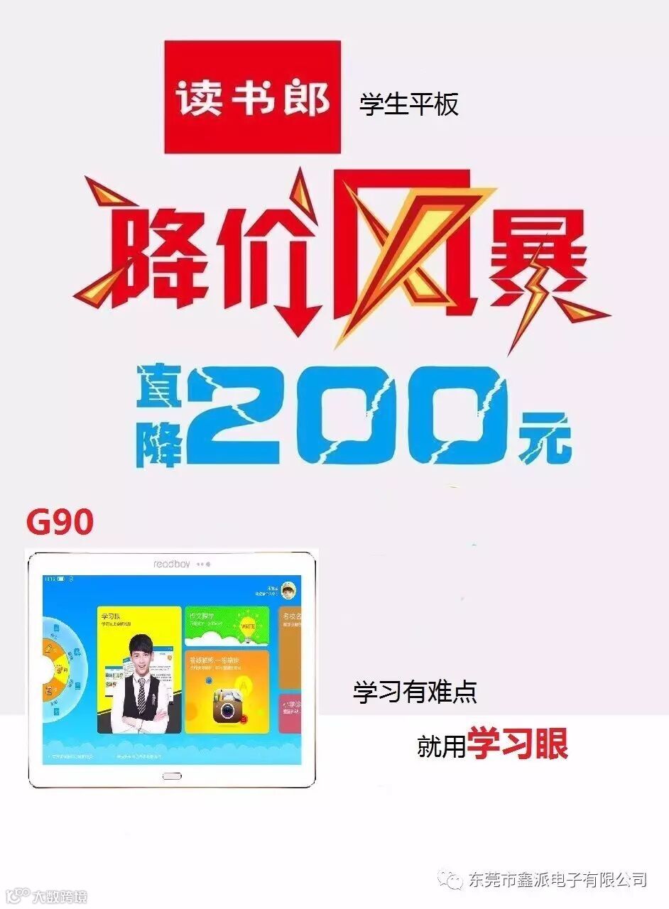 东莞市鑫派电子有限公司在清溪镇润升百货二楼新开了读书郎专柜,暑假期间购机放大价,有买有送,买一多送。