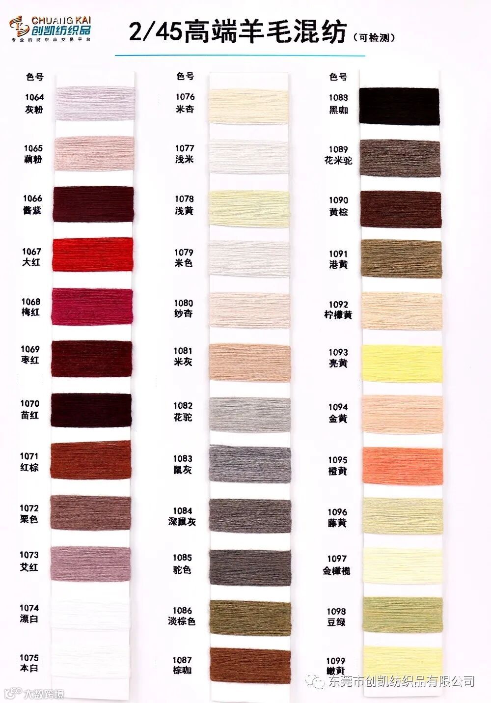 东莞市创凯纺织品有限公司2/45NM 高端羊毛混纺(可检测)