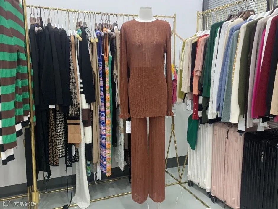 这款砖红色针织套装面料轻薄,单边坑条纹工艺,热销于欧美国家。