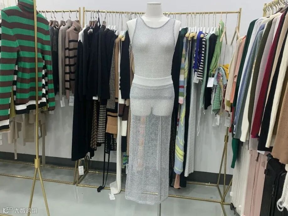 这款灰色背心长裙套装采用包骨线(金属丝内包裹着纱线)编制,科技感满满,面料柔软有弹性,不易皱垂感好,热销于欧美市场,沙滩风度假穿搭,深受年轻时尚女孩的喜欢。