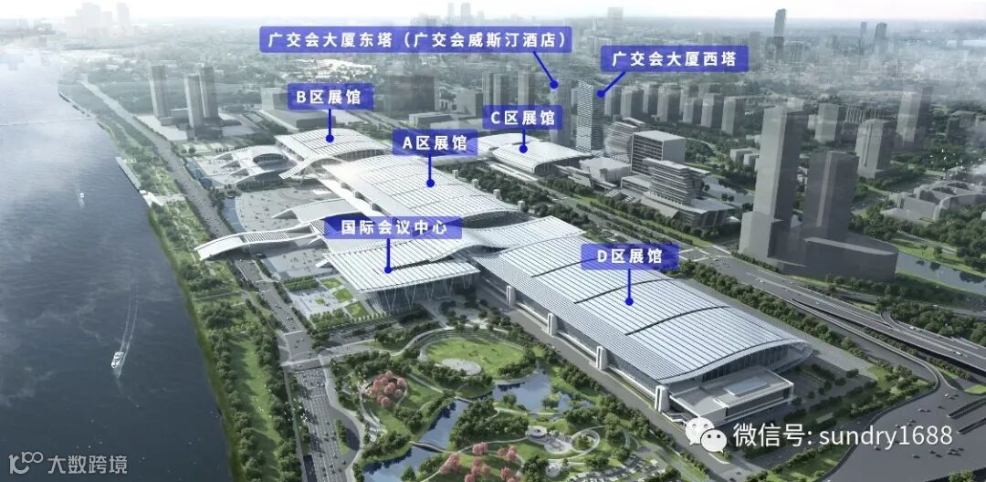 广交会展馆是全球规模最大的会展综合体,由A、B、C、D区展馆、国际会议中心、广交会大厦东塔(广交会威斯汀酒店)和西塔组成。