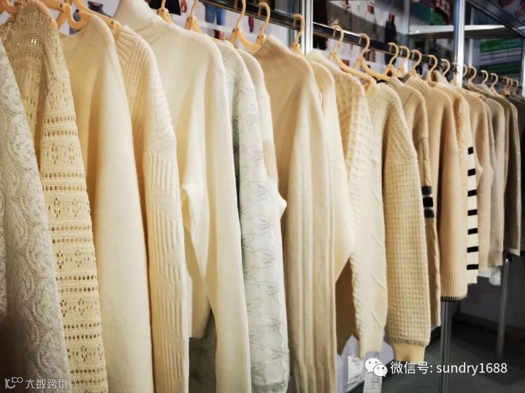 布展当天,参展负责人首先将参展的布片和毛衣分门别类挂在展厅内合适的位置。