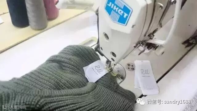 按照商标、成份、码数等资料,缝洗水标和领标,一般领标车于后领线中位。