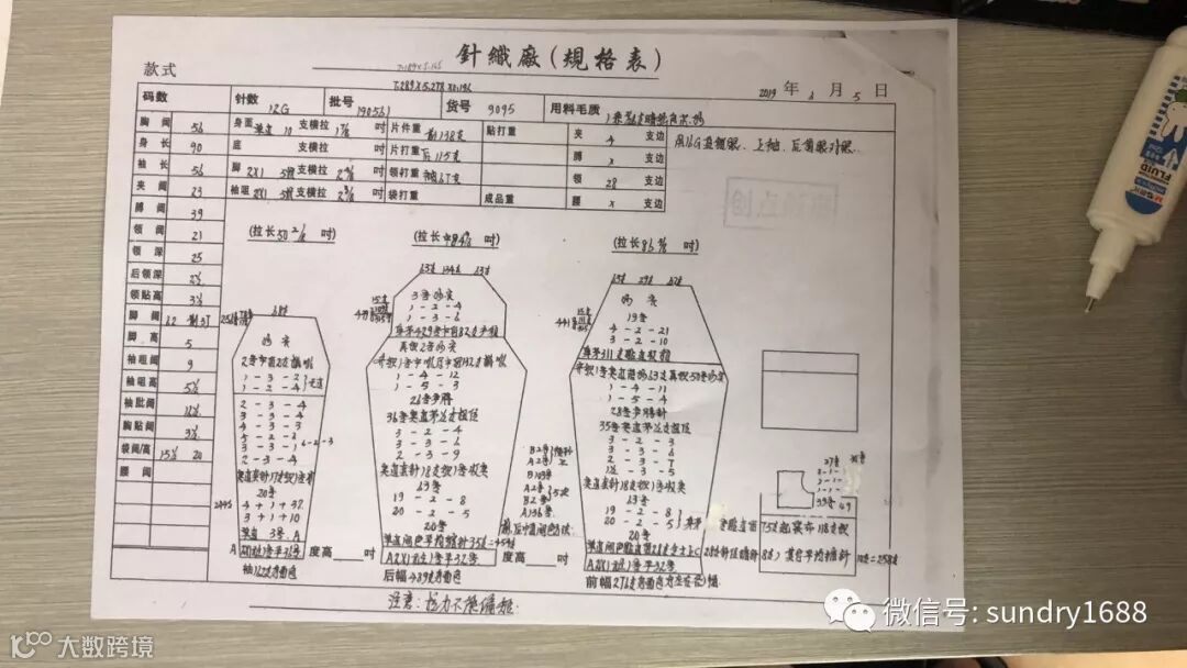 设计师设计好图纸交由样板师打版,版型细节调整好后下到工厂,工厂进行原料毛衫检验,制作生产单,根据图纸用电脑横机织片。