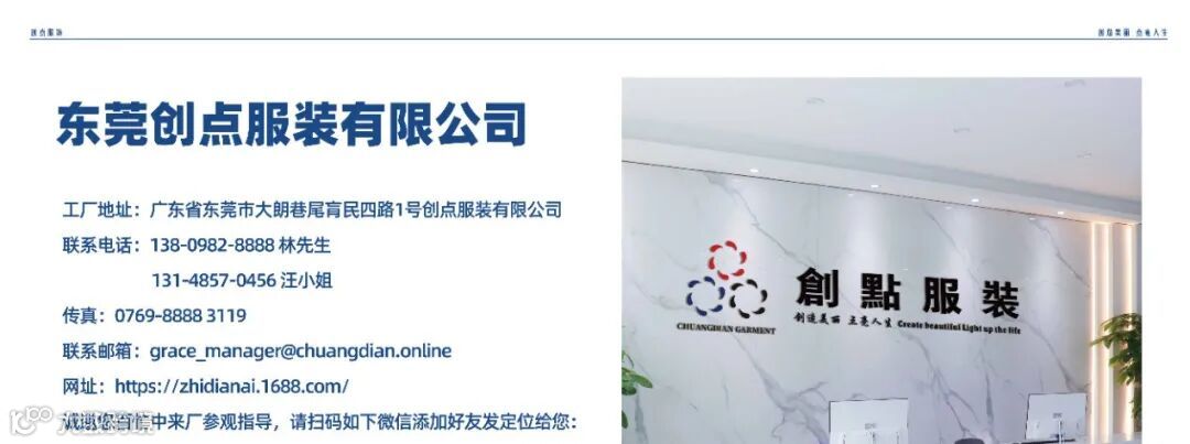 东莞创点服装有限公司成立于2008年,是一家致力于高品质童装,女装,男装毛衣针织的专业服装生产公司。