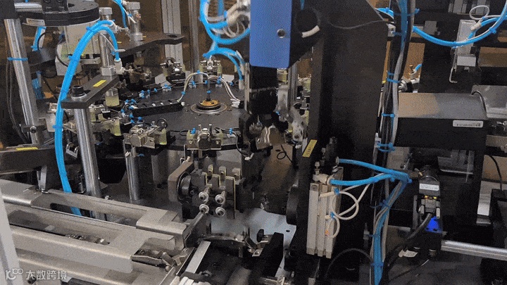 动图里全程不用人工上手,零件自动上料、机器精准装配,比人工手稳效率高,再也不用愁招工难