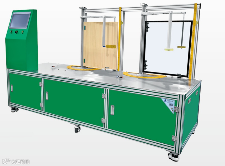工作原理:将含铰链的成品家具拉门与仪器相连,模拟日常使用过程中的情况对拉门进行反复开启和关闭,循环一定次数后检查铰链是否存在损坏或其他影响使用的情况。适用柜门铰链耐久性测试、合页门疲劳寿命试验,可通用30度、60度、90度、145度、165度、反弹铰链、铝框铰链疲劳测试。可以检测下沉量、测试铰链的推拉力,同时可以检测铰链的闭合时间。标准配备两扇600*700*18木门,门板标准重量为5.5KG,采用伺服电机驱动,人机界面显示测试数据,测试参数可以设置。
