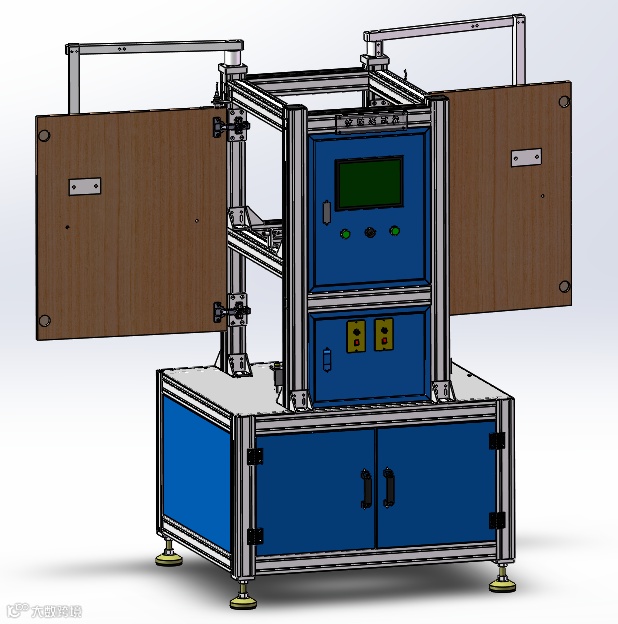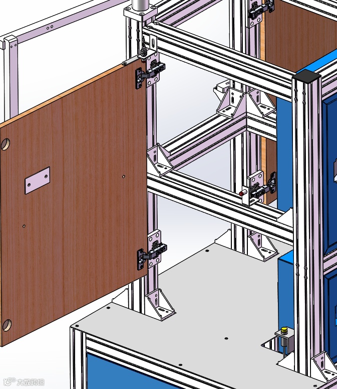 整机为铝型材框架结构60*60铝型材框架,仿双门双装衣柜铰链安装方式,柜壁柜门安装铰链处配各款相对应的安装治具。
