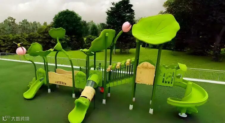 那组以“荷塘月色”为主题的滑梯,翠绿的荷叶造型台阶层层叠叠,粉色荷花苞化作滑道入口,就连扶手都设计成弯曲的莲蓬藤蔓,孩子们攀爬时仿佛置身夏日荷塘,指尖能触到“露珠”般的防滑颗粒。而城堡主题滑梯则完全是另一个世界:哥特式尖顶的滑道塔、嵌着 “宝石” 的城墙攀爬网、藏着“秘密通道”的螺旋滑道,当孩子从 “城堡大门” 滑下时,披风在风中扬起,瞬间化身童话里的小英雄。