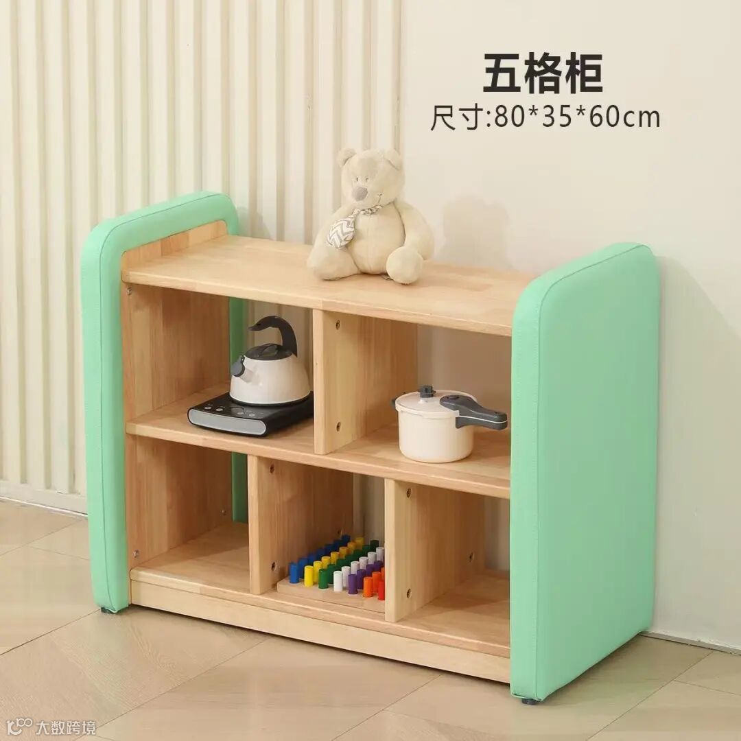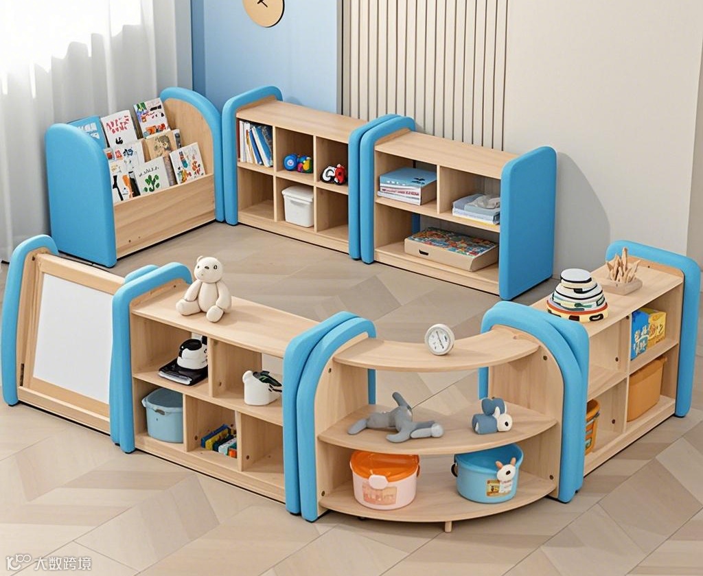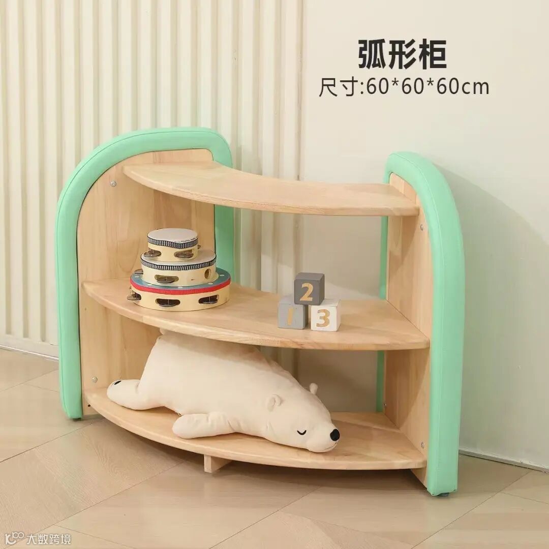 这款组合柜功能丰富,堪称托育区角的 “多面手”。开放式储物格方便放置各类玩具、绘本,培养孩子自主收纳的习惯;带有柜门的收纳区可存放私密物品或小型教具,保持空间整洁有序。部分组合柜还巧妙融入展示架设计,成为孩子手工作品、创意成果的展示舞台,激发他们的自信心与创造力。不同形状和高度的柜体模块,可根据托育空间布局和孩子的年龄特点自由组合,打造阅读角、建构区、角色扮演区等专属小天地,满足孩子们在游戏、学习、社交等多方面的成长需求。