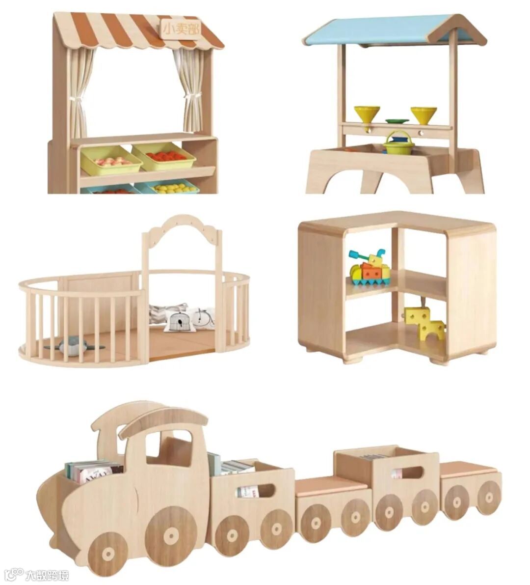 部分装备材料应能促进幼儿社会性的发展,如角色扮演玩具,娃娃家、医院、超市等场景的玩具,可以让幼儿在游戏中学会与他人合作、交流和分享,培养社会交往能力和情感表达能力。