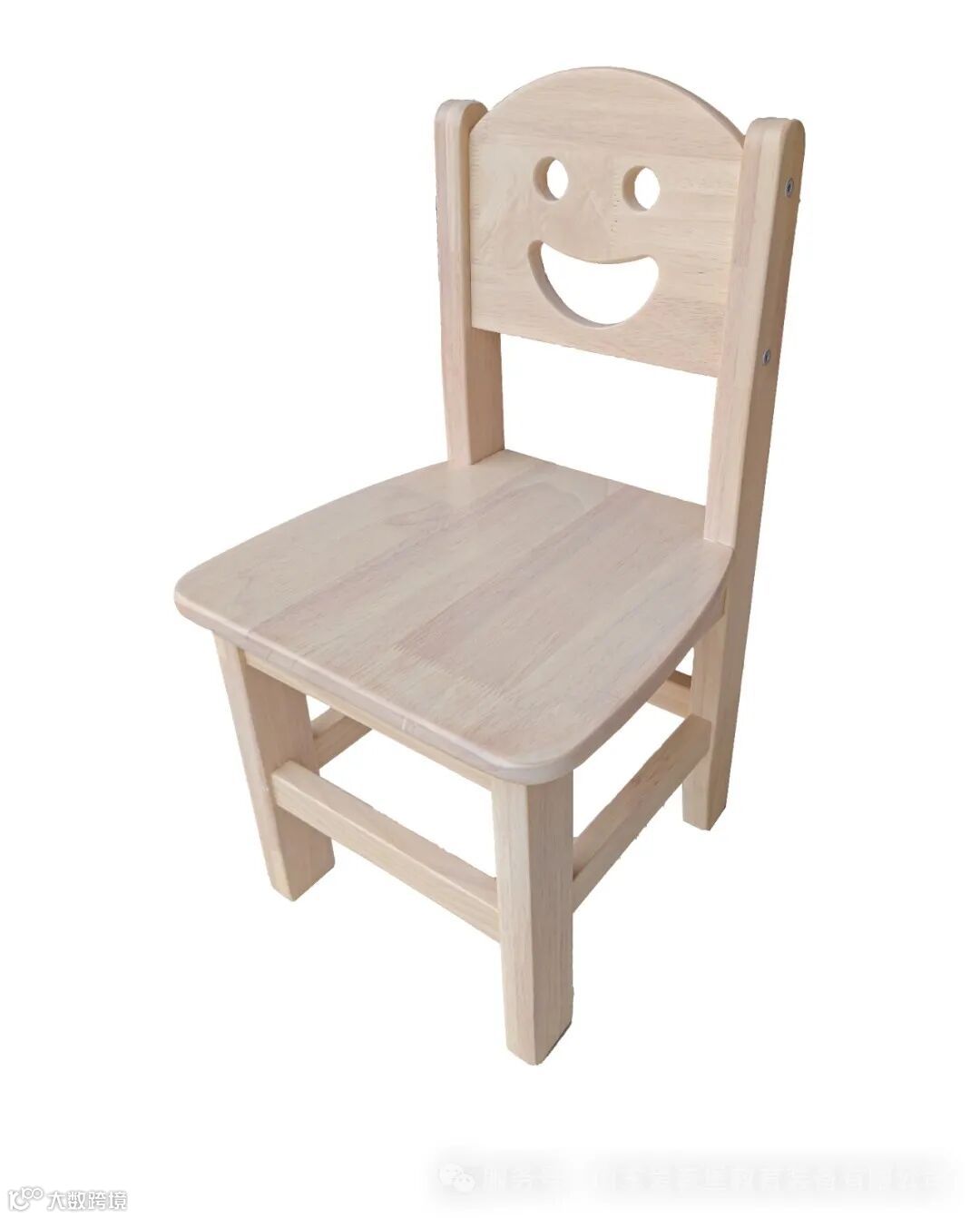 幼儿园笑脸椅,材质为橡胶木,尺寸30*30*46/52/56cm(长宽高),涂层采用环保水性漆,安全环保无味,符合 GB 28007-2011《儿童家具通用技术条件》标准。