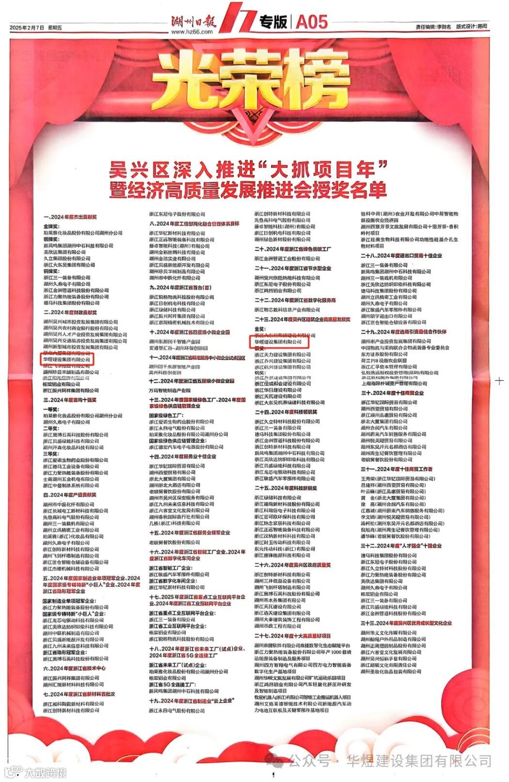 第五年获得吴兴区建筑企业高质量发展金奖