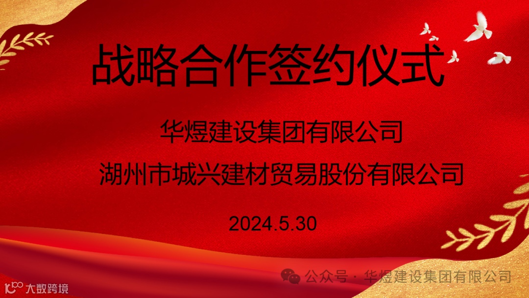 2024年5月30日,华煜建设集团有限公司与湖州市城兴建材贸易股份有限公司在华煜集团举行战略合作签约仪式。这是两家公司友好合作的新步伐,是两家公司开启携手共赢的新篇章。