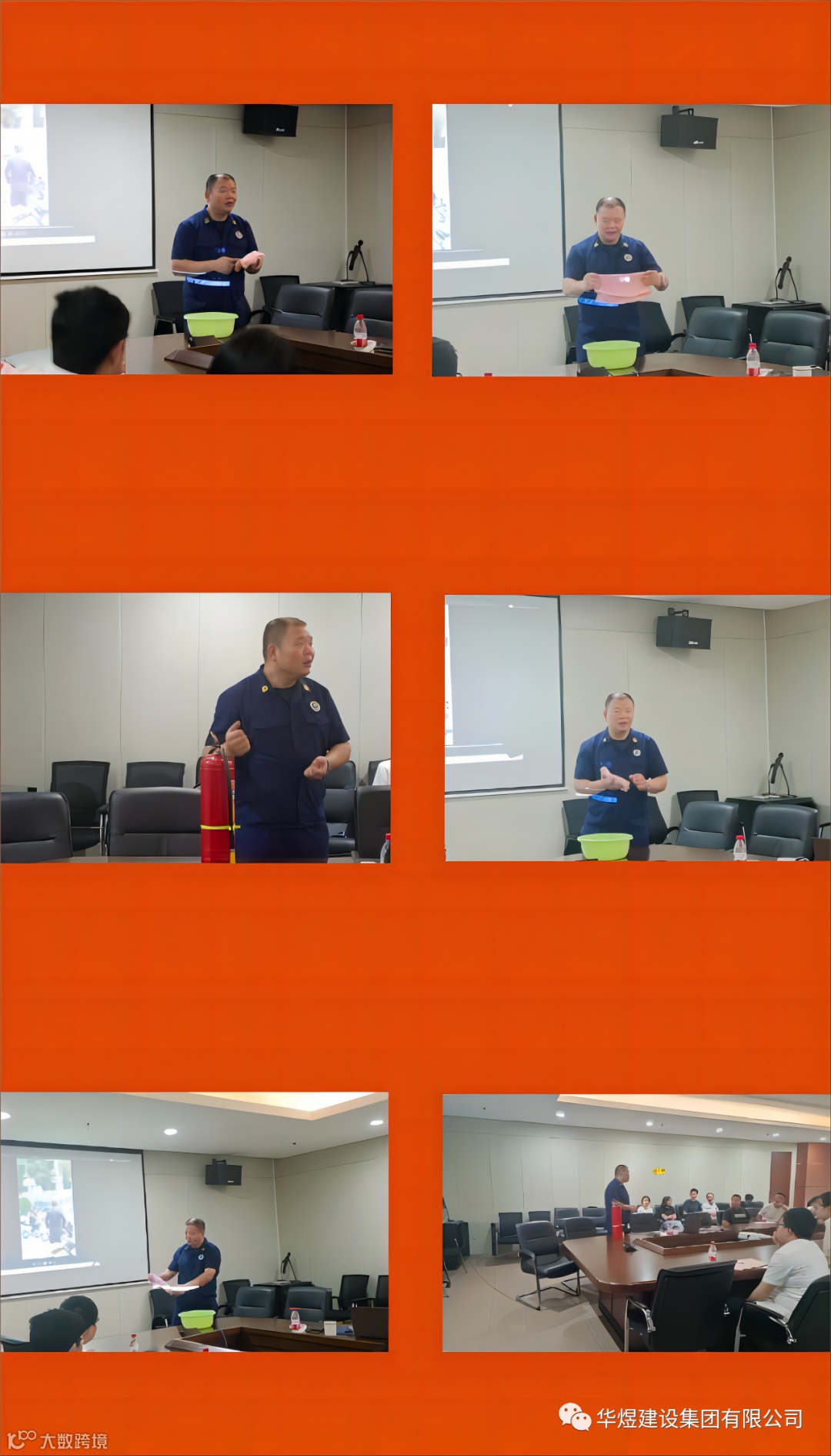 本次培训特邀吴兴区消防大队沈燕斌主任对所有参训学员进行了培训。在活动中,沈主任为员工们详细讲解了火灾的危害、灭火方法、火场逃生等消防知识。同时,还针对华煜集团公司内部的消防设施和器材进行了详细的介绍和操作演示。通过讲解和示范,员工们学会了正确使用灭火器、正确使用毛巾从火灾现场逃生等方法。