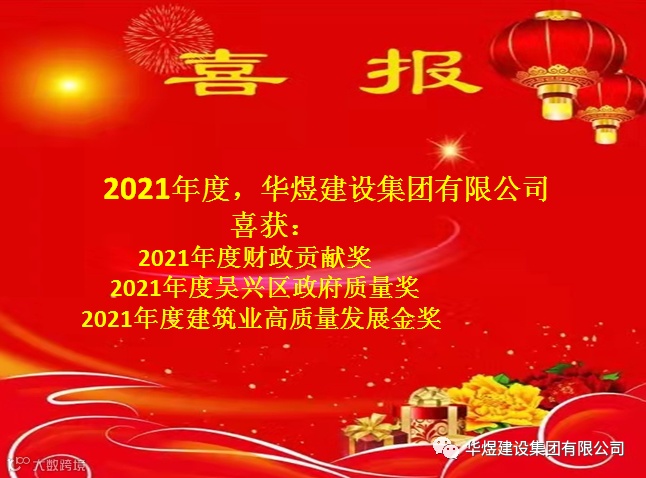 2022年1月25日,由中共湖州吴兴区委、湖州市吴兴区人民政府召开的《2022年吴兴区经济发展大会》,会上传来了多项喜讯,公司喜获2021年度财政贡献奖、2021年度吴兴区政府质量奖、2021年度建筑业高质量发展金奖。