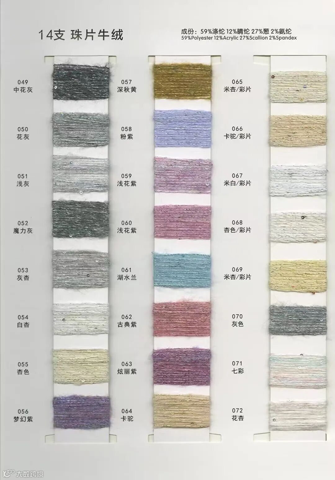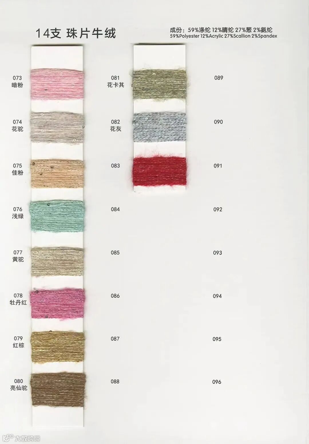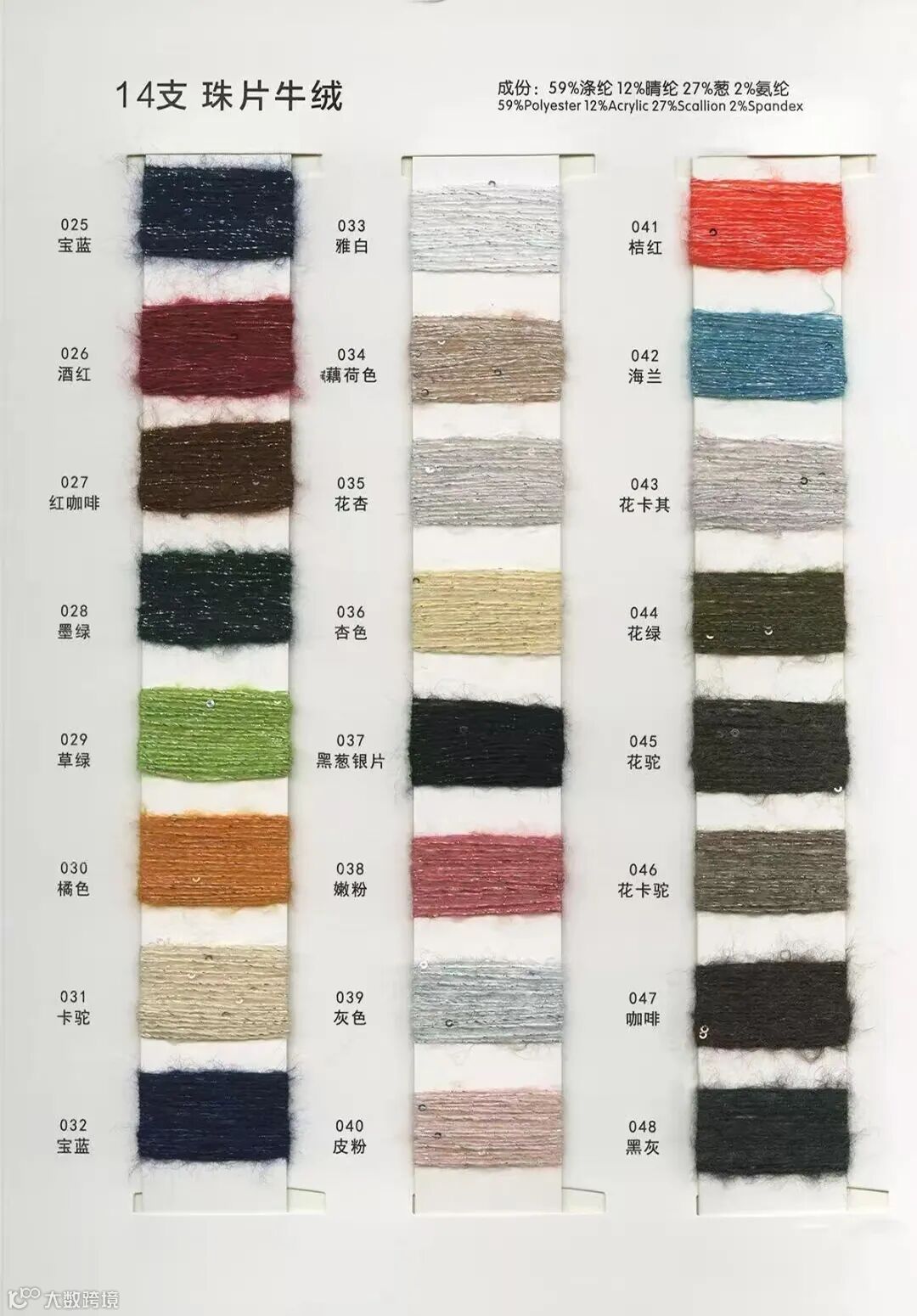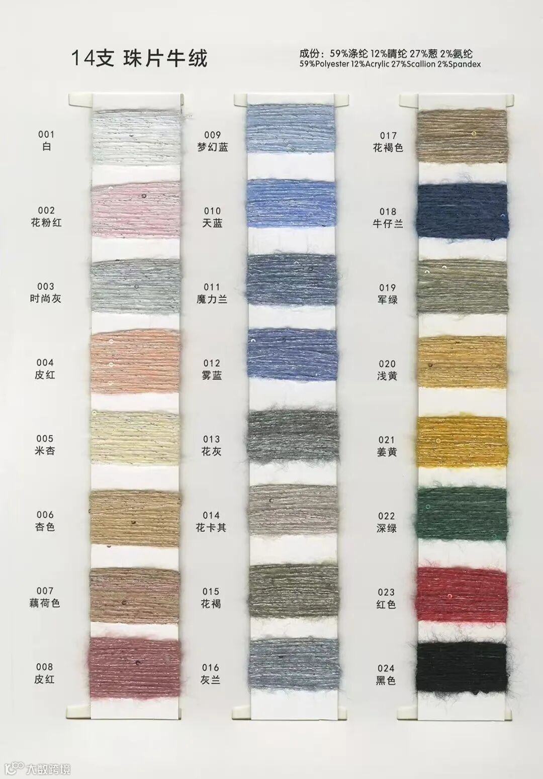 成分: 12%腈纶 Acrylic 59%涤纶 Polyester 27%葱 Scallion 2%氨纶 Spandex