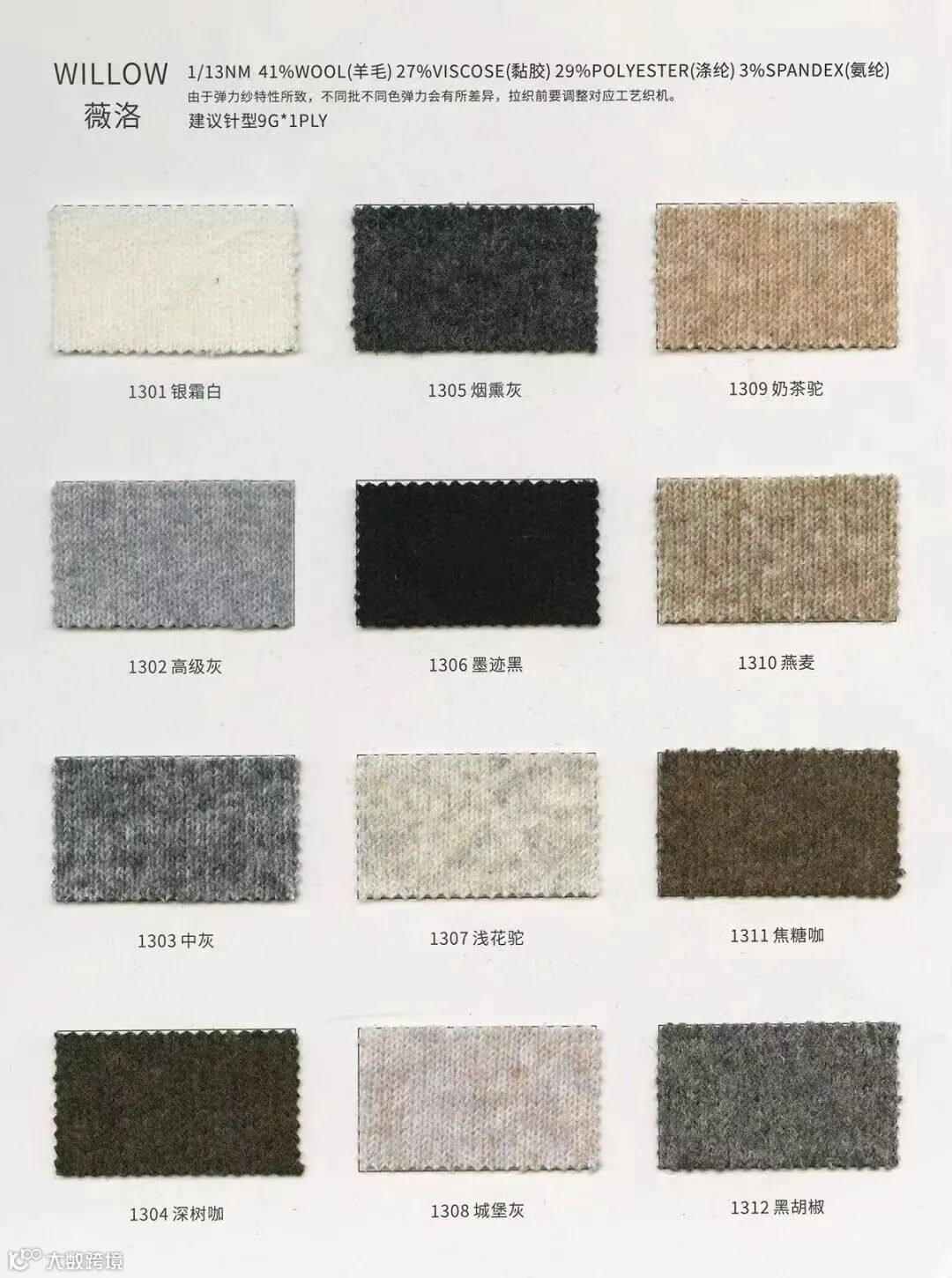 成分: 41%羊毛 Wool 27%粘胶 Viscose 29%涤纶 Polyester 3%氨纶 Spandex