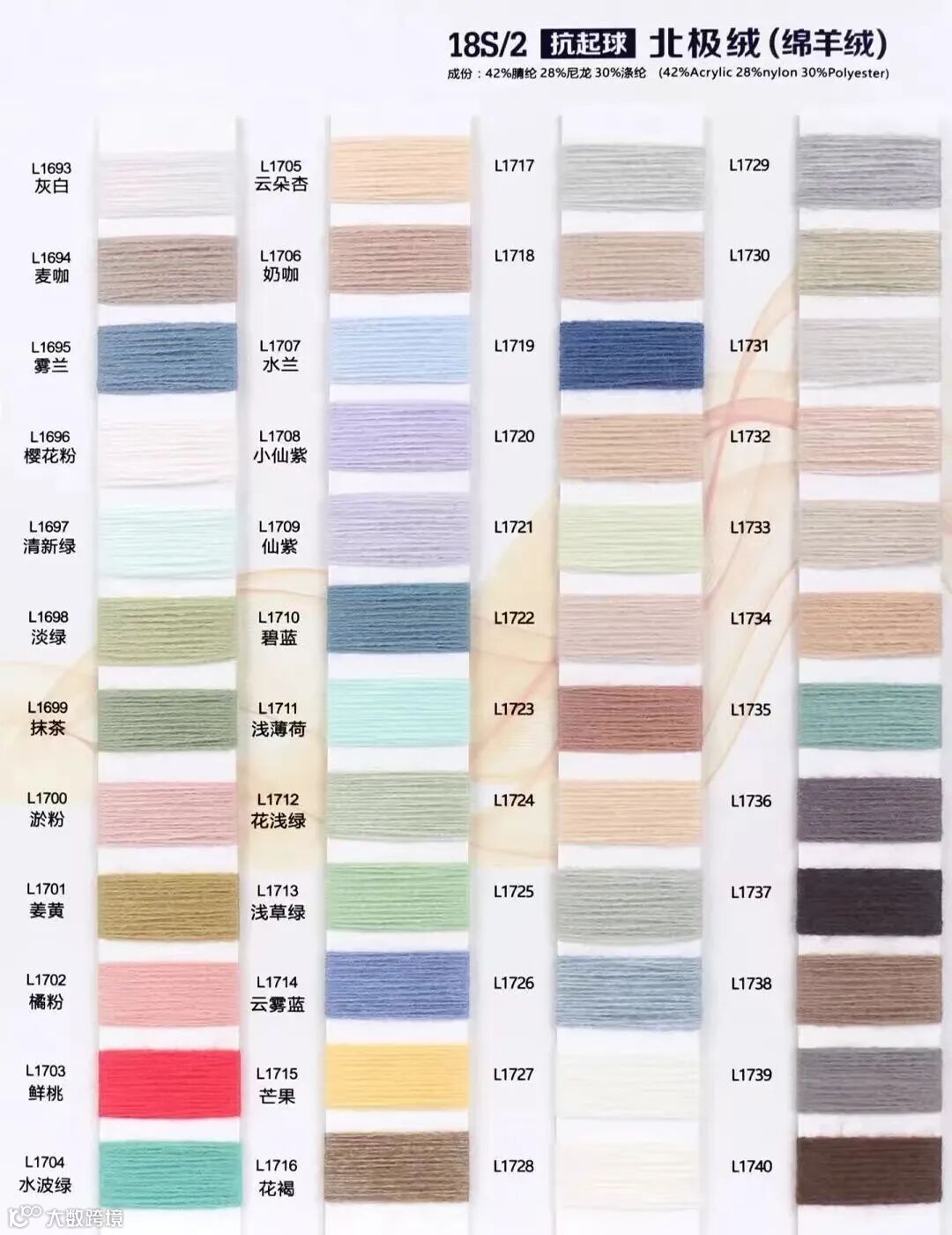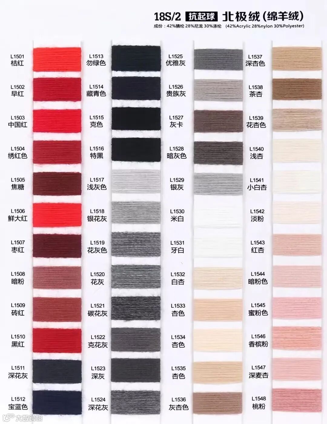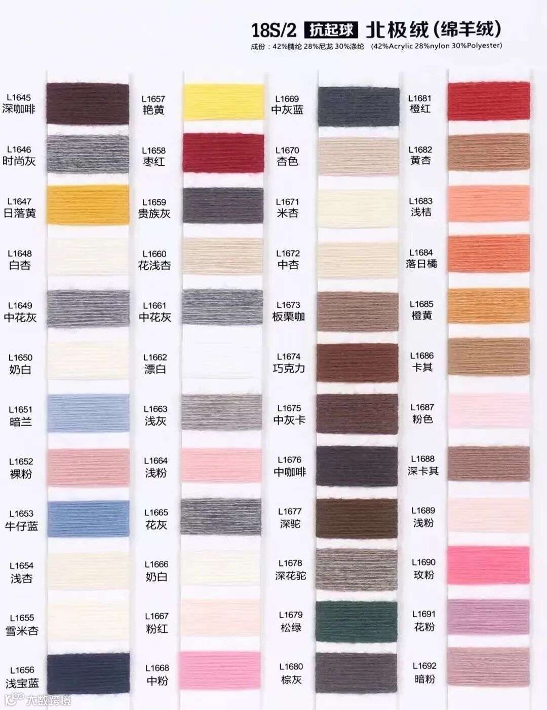 成分: 42%腈纶 Acrylic 28%锦纶 Nylon 30%PBT