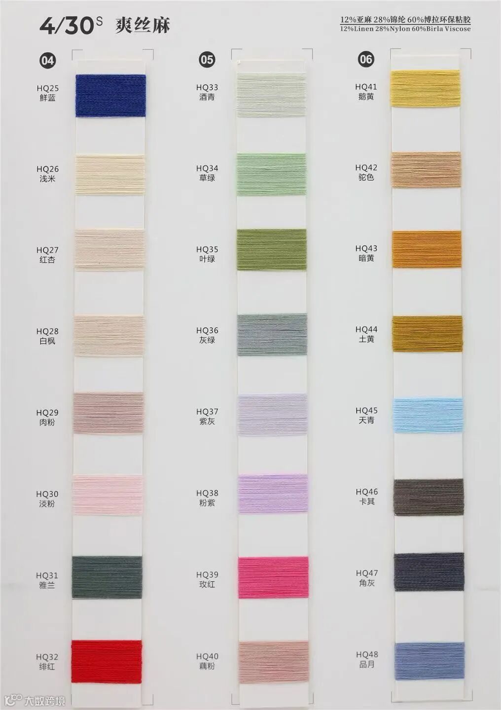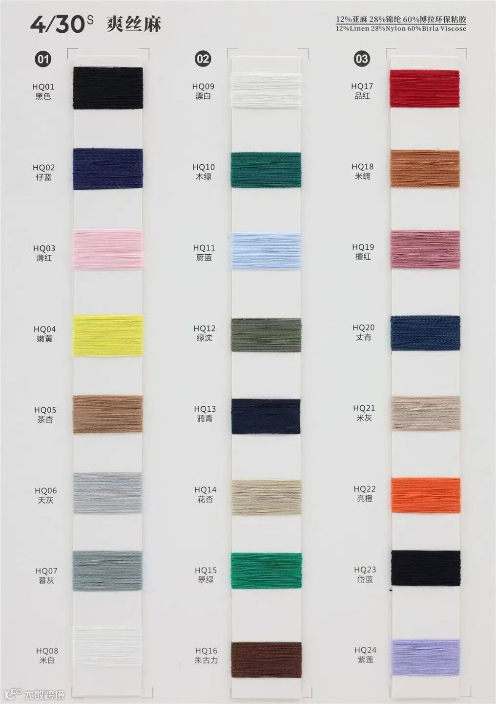 成分: 12%亚麻 Linen 28%锦纶 Nylon 60%博拉环保粘胶 Birla Viscose
