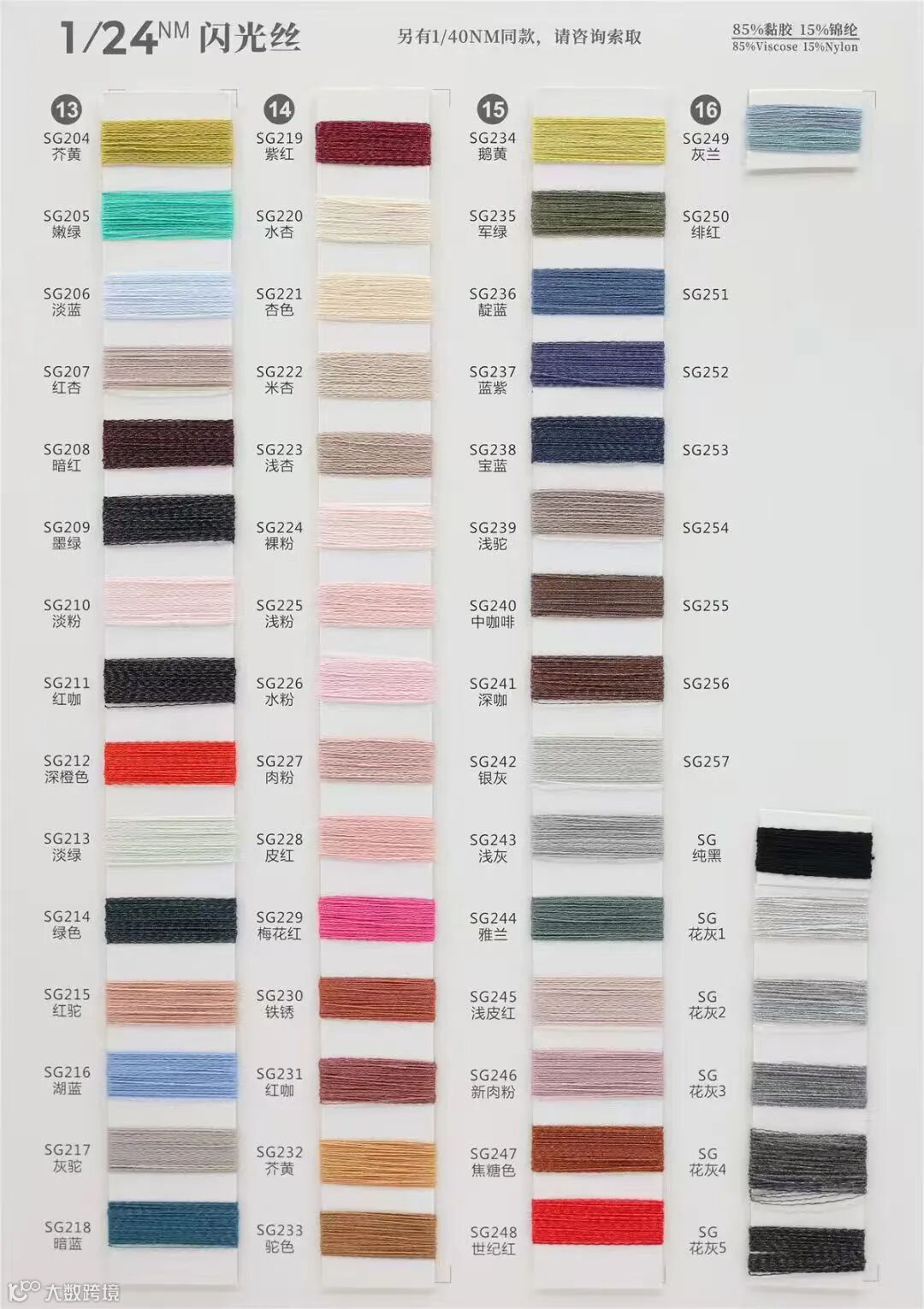 成分: 85%粘胶 Viscose 15%锦纶 Nylon