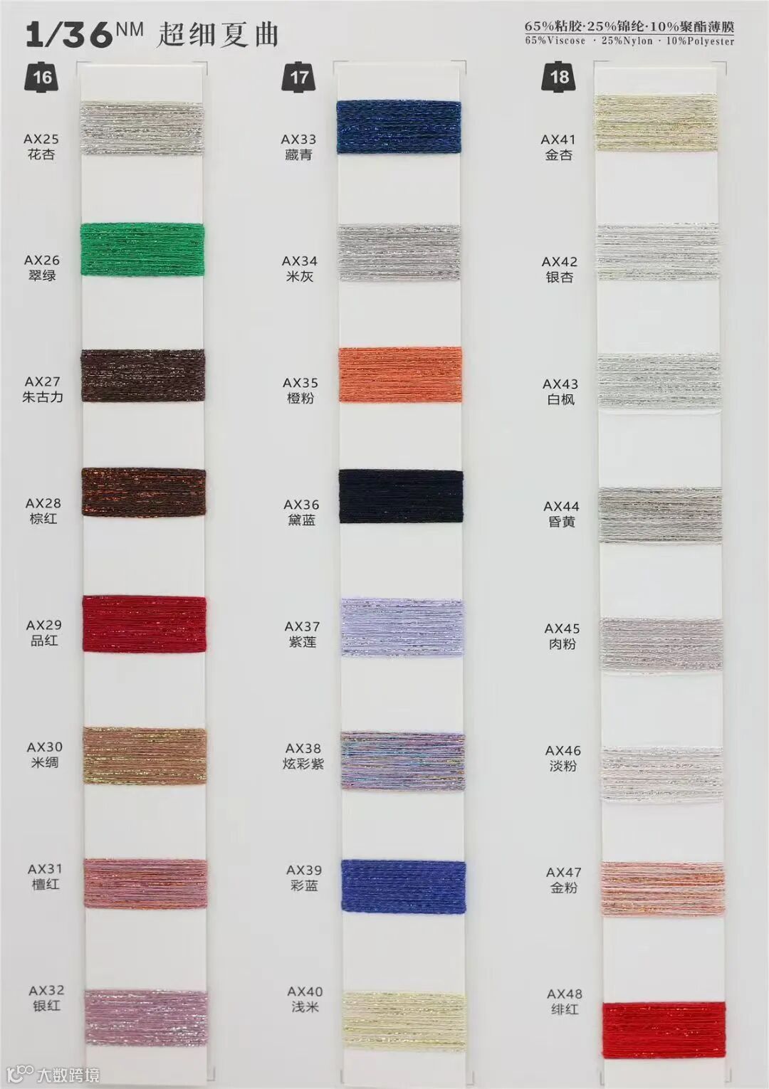 成分: 66%粘胶 Viscose 24%锦纶 Nylon 10%聚酯薄膜 Polyester