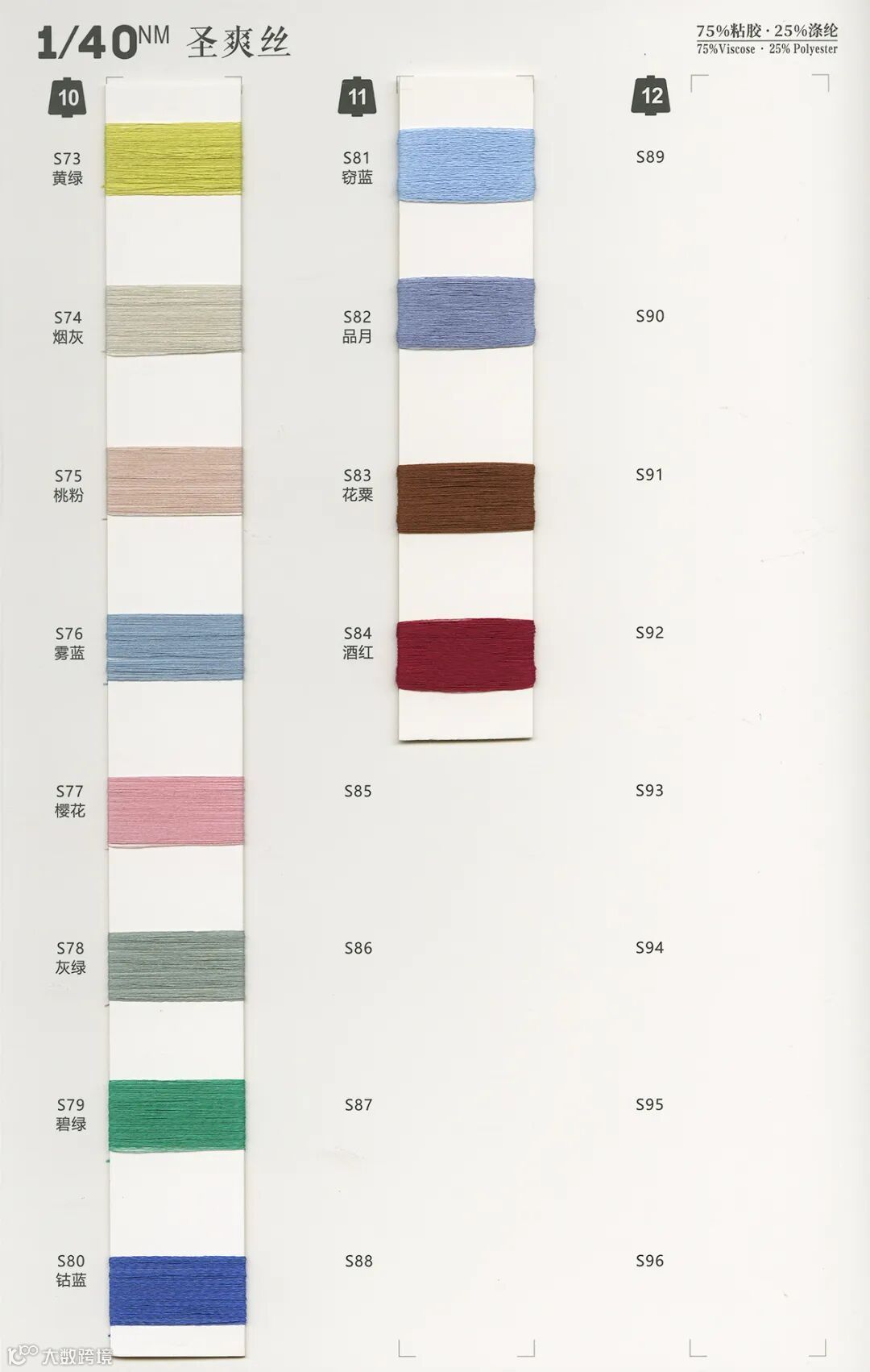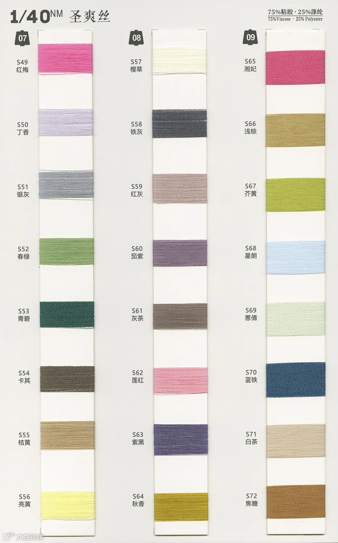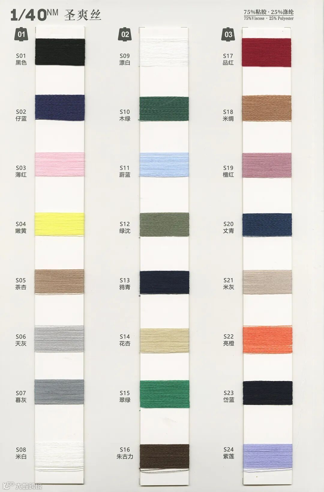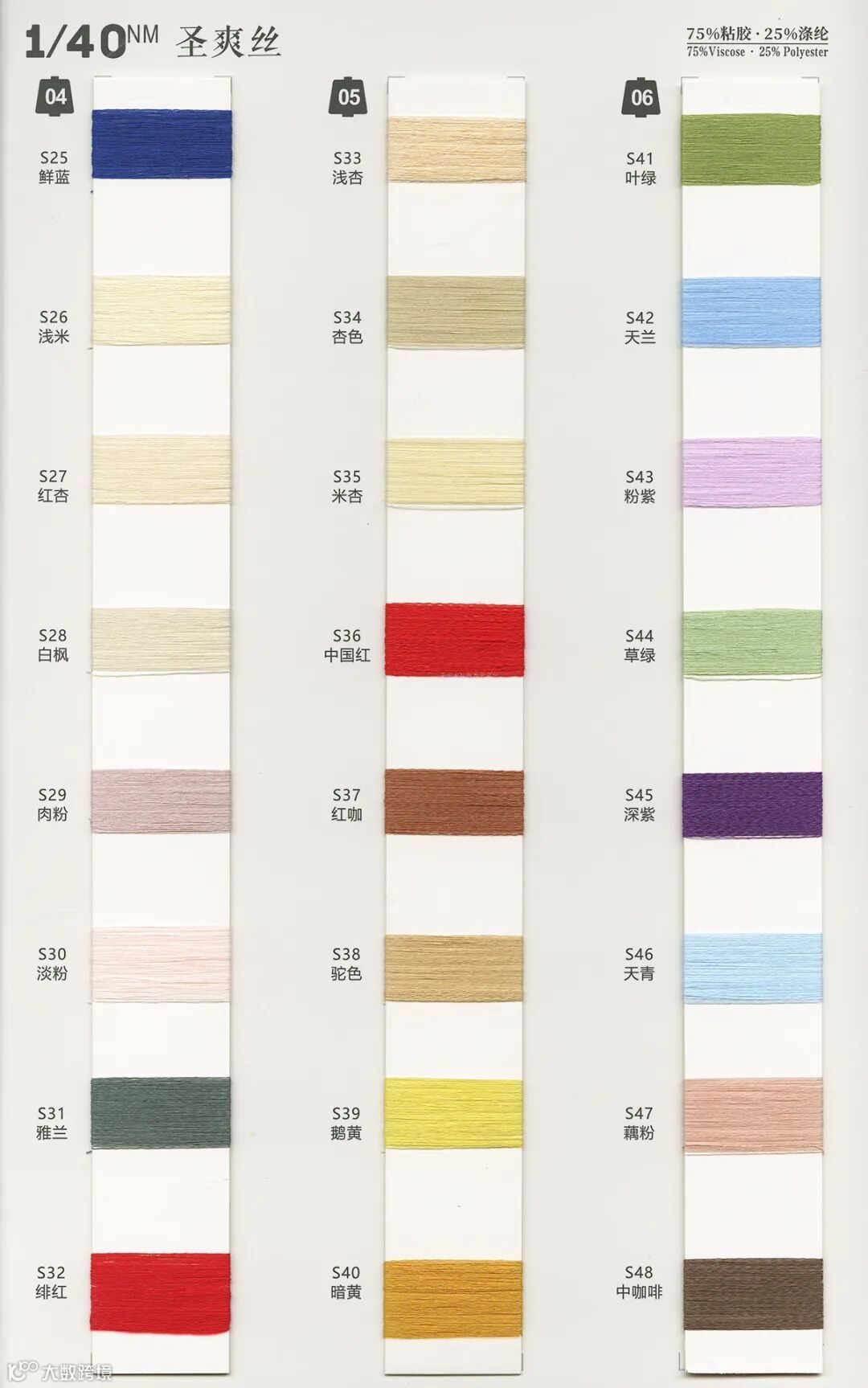1/40NM 圣爽丝:75%粘胶 Viscose 25%涤纶 Polyester