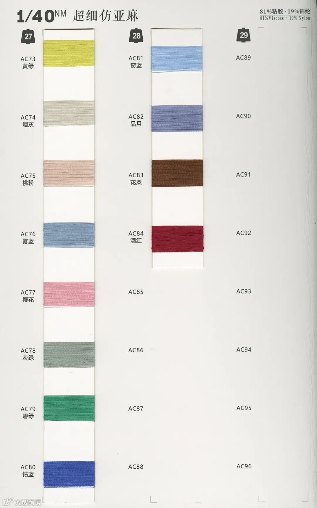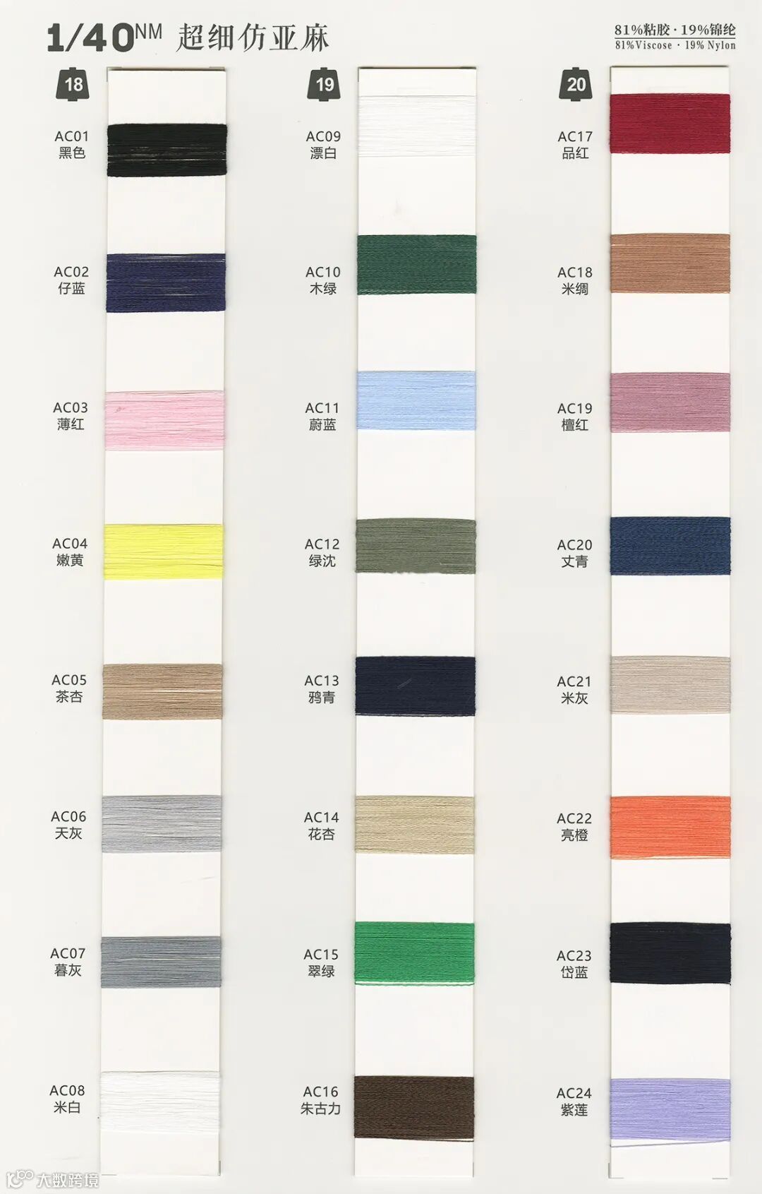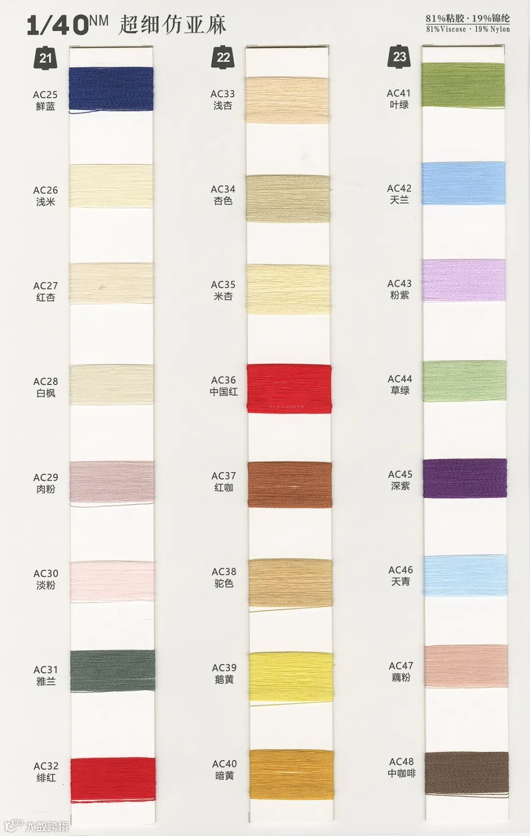 1/40NM 超细仿亚麻:81%粘胶 Viscose 19%锦纶 Nylon
