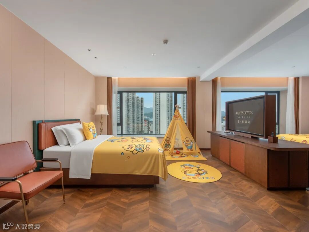 酒店拥有多间英伦港风复古格调的客房,并配备可容纳100人的豪华会议室。酒店整体采用英伦复古风格装修,兼具智能、助眠、健康、环保等特点,配套设施完善,集咖啡馆、餐厅、会议厅、健身房、洗衣房、儿童活动区于一体,致力于成为江门蓬江区的品质住宿标杆。