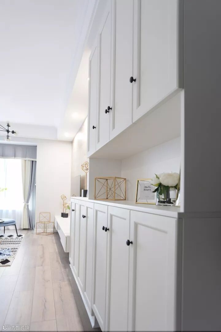 错落的矮柜形成别致的玄关,放上业主亲自挑选的装饰画与摆件,显得格外精致。