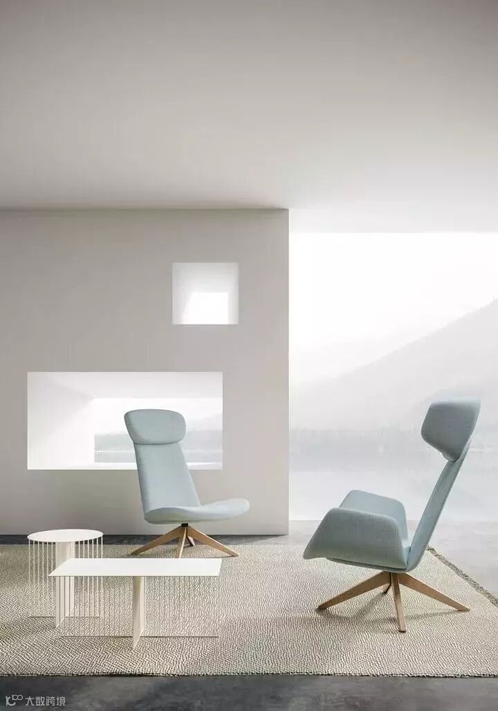 ▲ 婴儿蓝背景搭配米色系家居,轻盈与稳重质感的有机结合,带来自然恢宏的气势。而张弛有度的配搭更是展现出舒适居家的惬意气息。