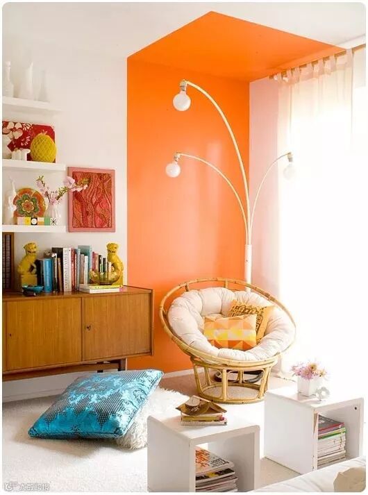橘红色又或是橙色,是生气勃勃,充满活力的颜色,是收获的季节里特有的色彩。把它用在卧室则不容易使人安静下来,不利于睡眠。