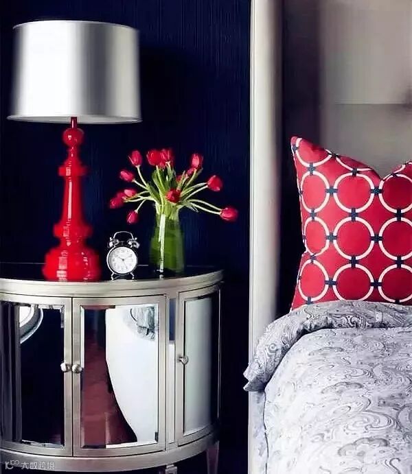 建议选择红色在软装饰上使用,比如窗帘,床品,靠包等,而用淡淡的米色或清新的白色搭配,可以使人神清气爽,更能突出红色的喜庆气氛。