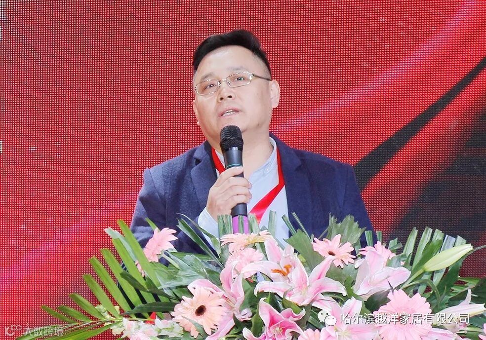 黑龙江省装饰材料行业协会会长赵勇先生到会致辞,感谢越洋家居对行业发展做出的突出贡献,肯定越洋家居的经营管理模式!对行业未来的发展进行了细致的分析,为我们越洋家居未来的发展给予了正确发展指导方向!